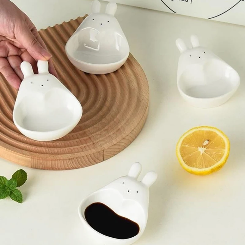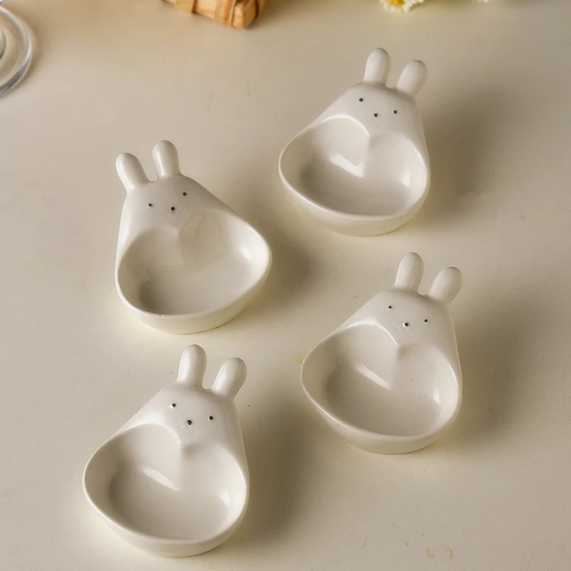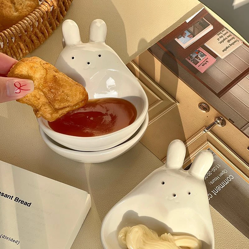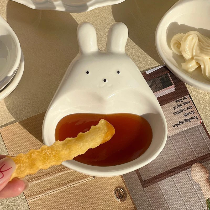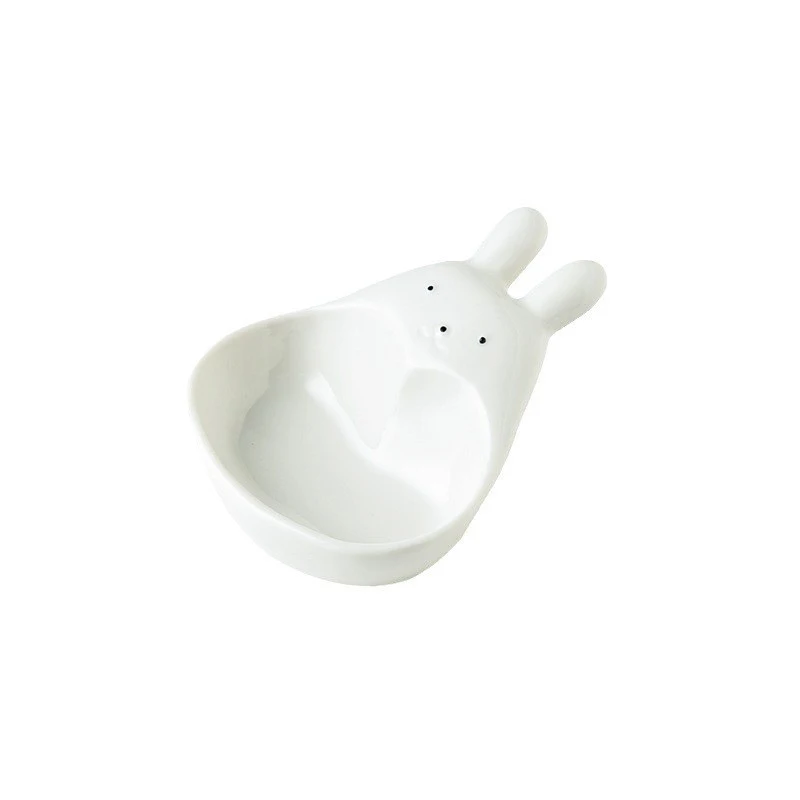 Assiette à tremper en céramique tridimensionnelle, lapin de dessin animé super mignon, s/05 er, assiette à collation pour ketchup, cordon de vinyle, lapin blanc, ménage