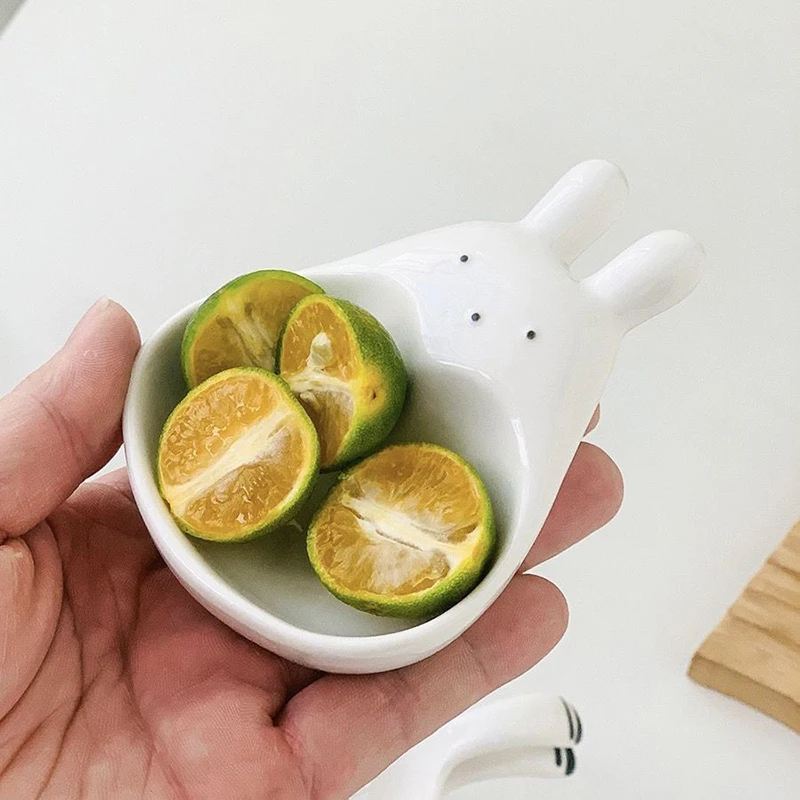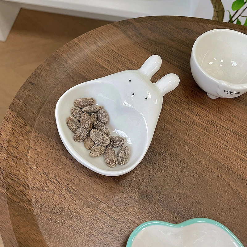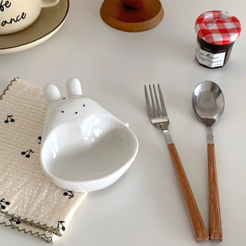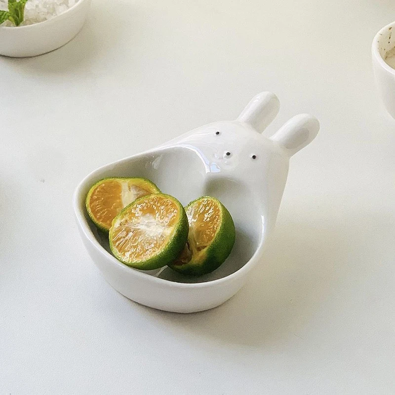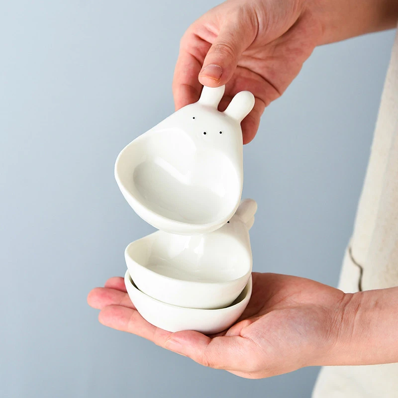Assiette à tremper en céramique tridimensionnelle, lapin de dessin animé super mignon, s/05 er, assiette à collation pour ketchup, cordon de vinyle, lapin blanc, ménage