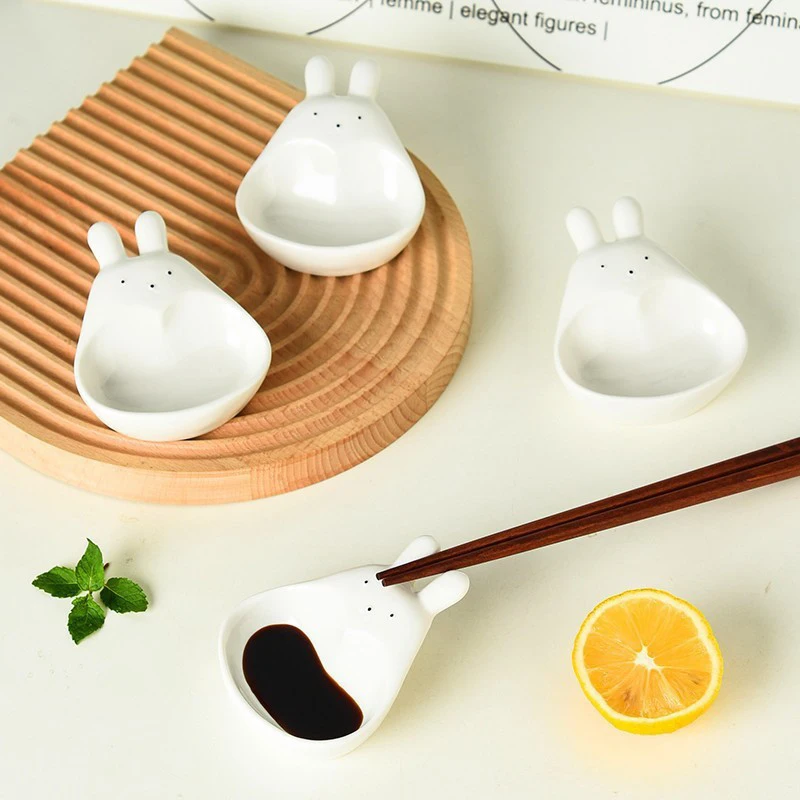 1. Apparence créative: ces plats de sauce sont conçus avec des motifs d'animaux de dessin animé mignon. La combinaison de la céramique blanche et des motifs de dessins animés ajoute une sensation amusante et mignonne à la vaisselle. L'aspect créatif du plat de sauce en fait également une décoration accrocheuse sur la table à manger.