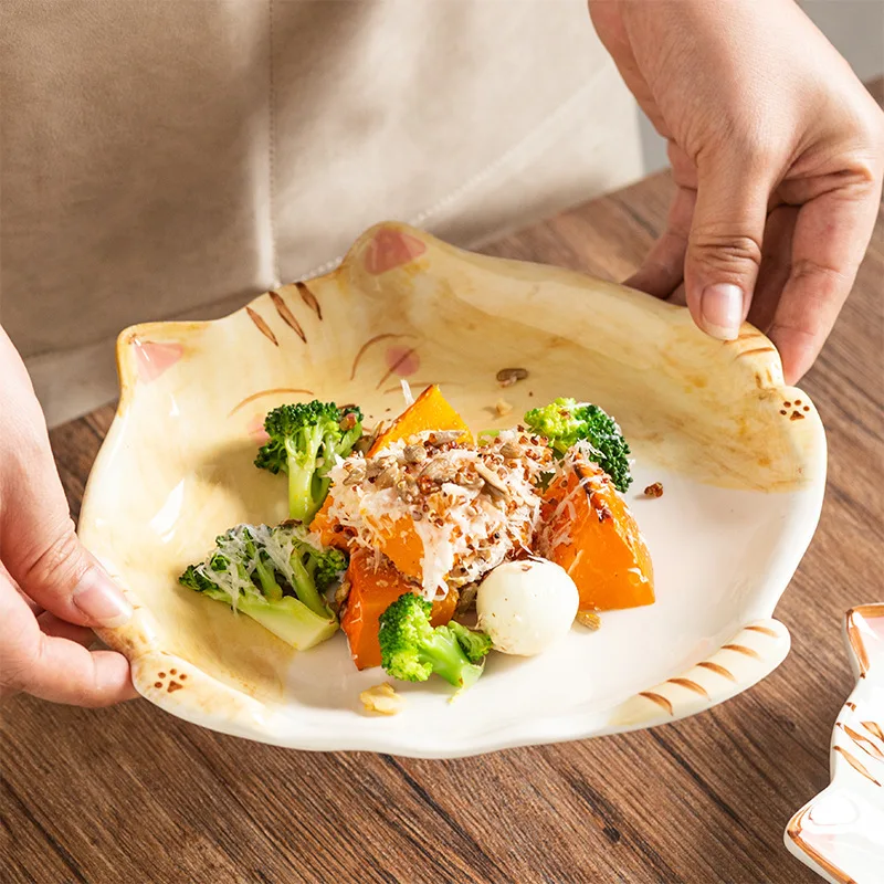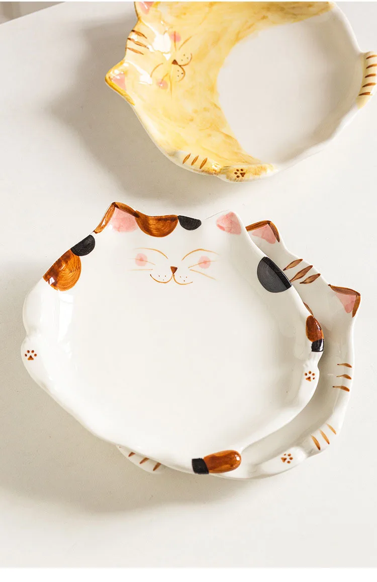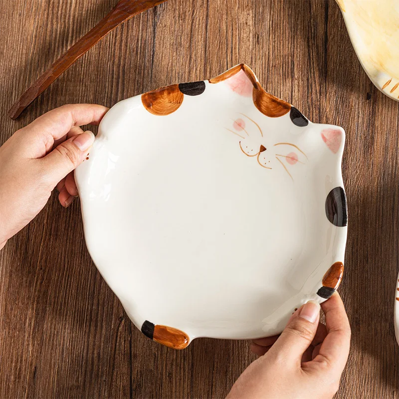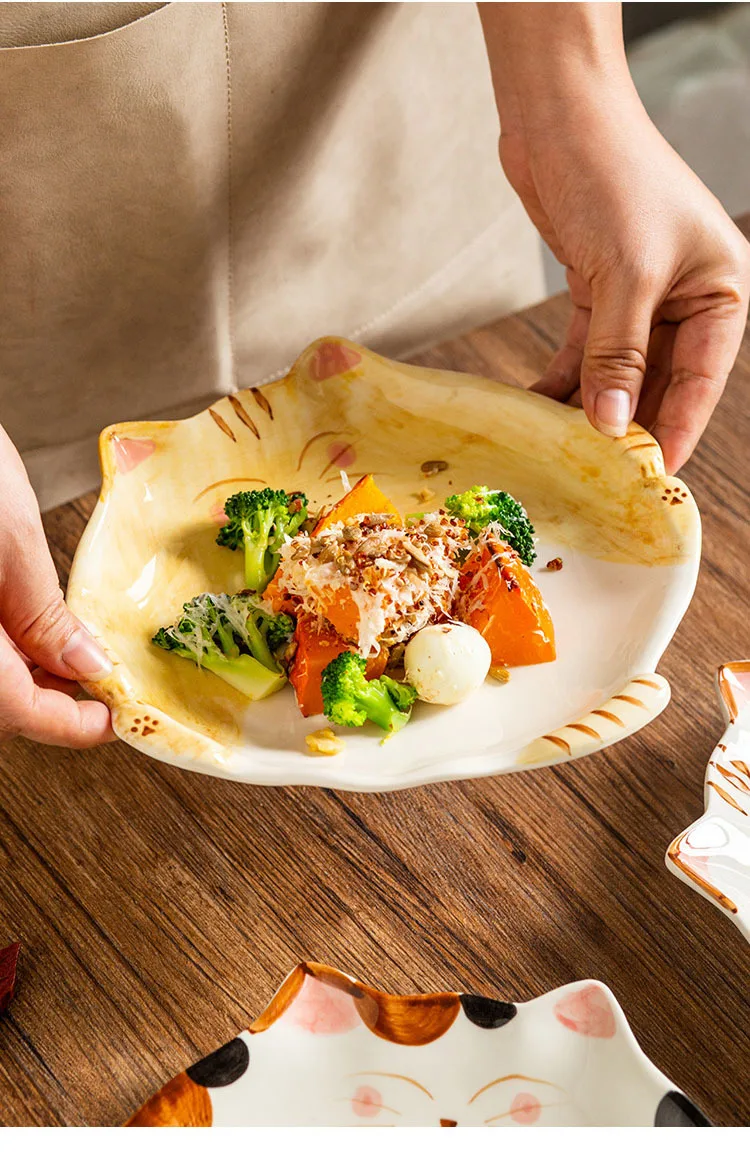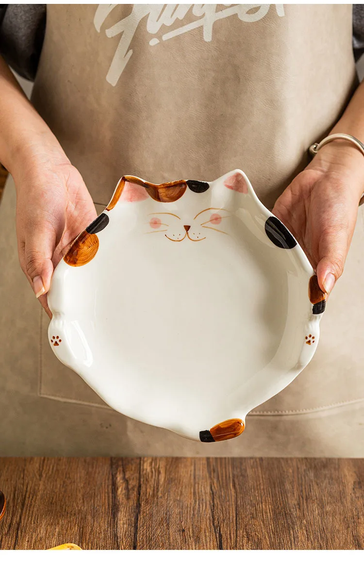 Assiette en céramique de style dessin animé japonais mignon, plat en forme de chat, QuePlate, petit déjeuner, plat à dessert, ustensiles de cuisine pour la maison