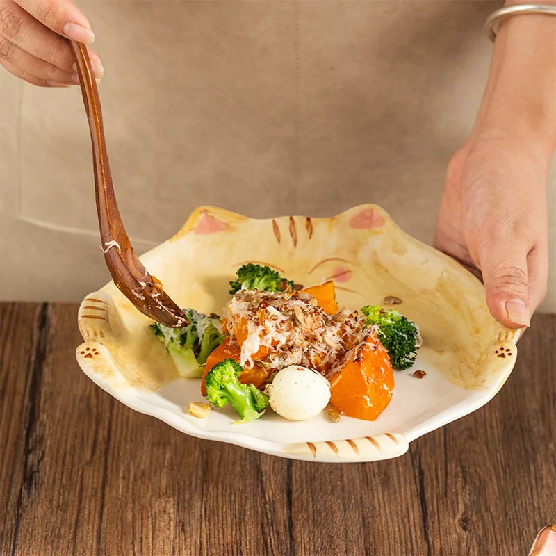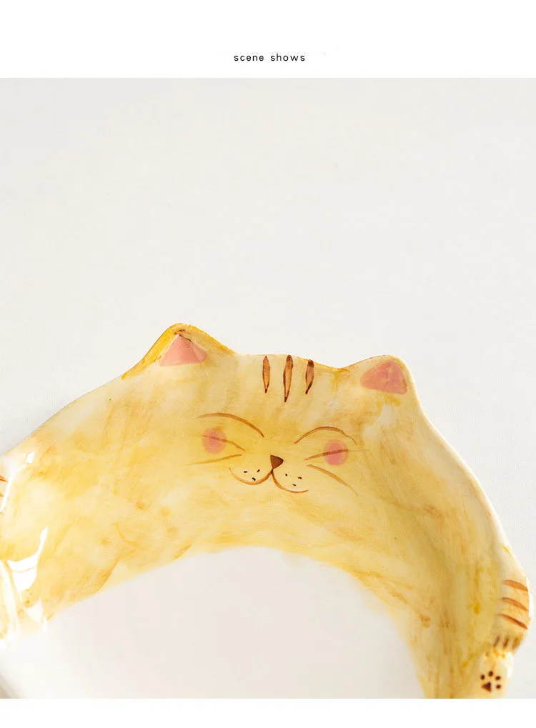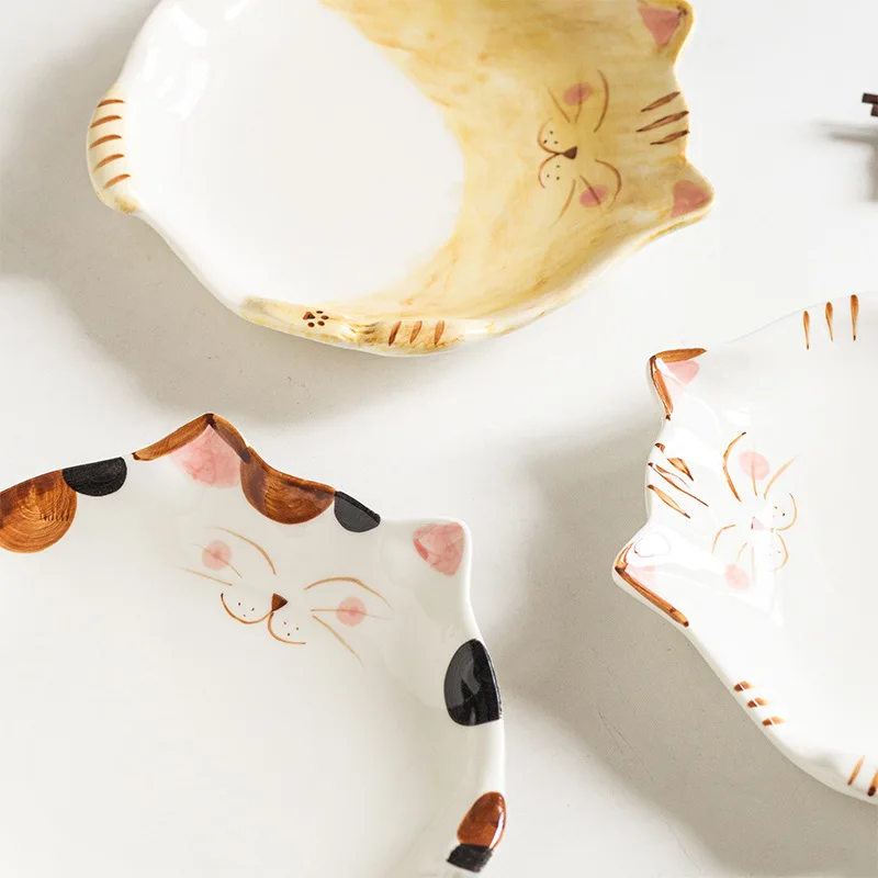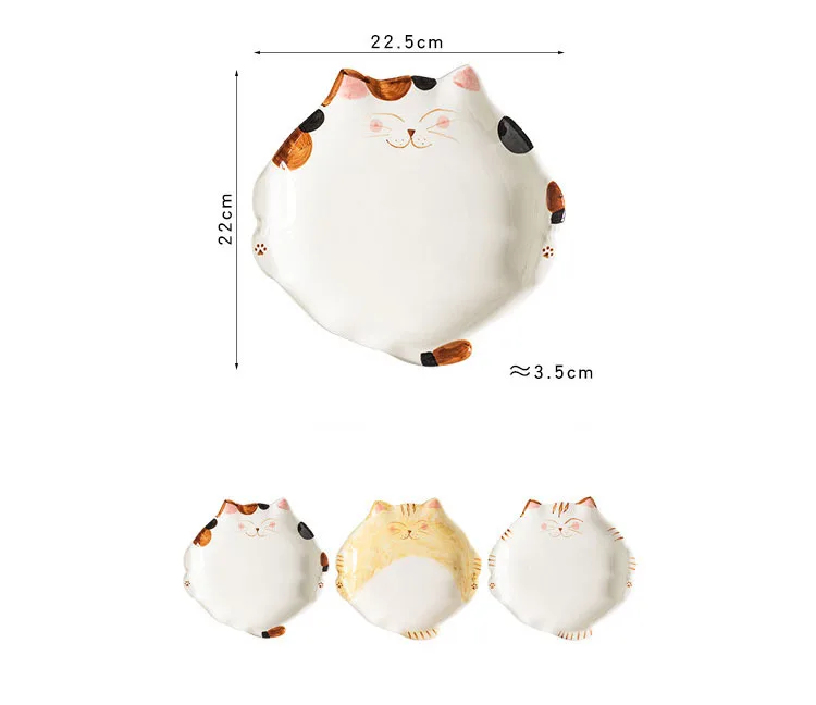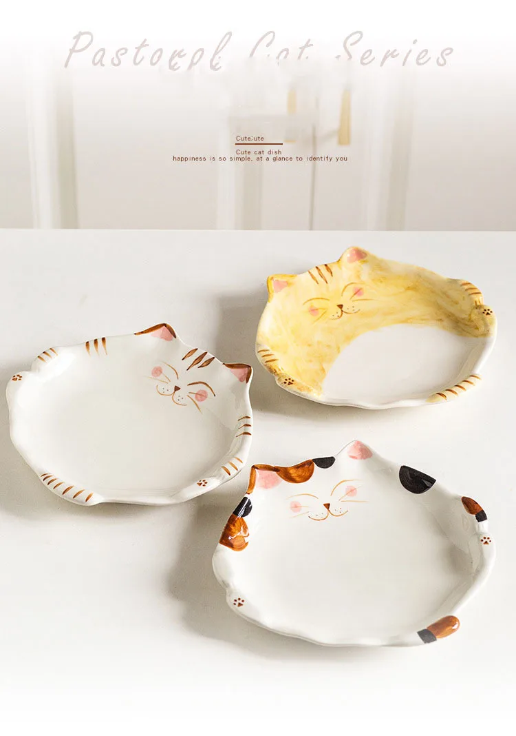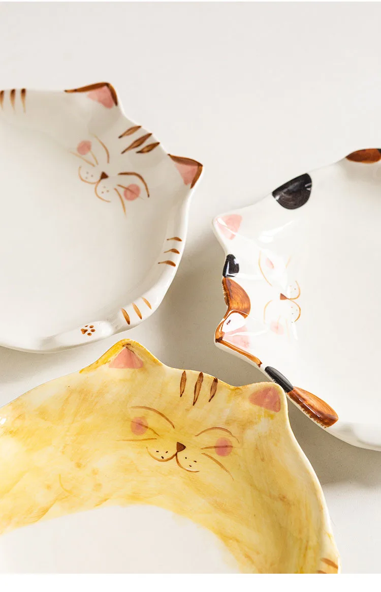 Assiette en céramique de style dessin animé japonais mignon, plat en forme de chat, QuePlate, petit déjeuner, plat à dessert, ustensiles de cuisine pour la maison