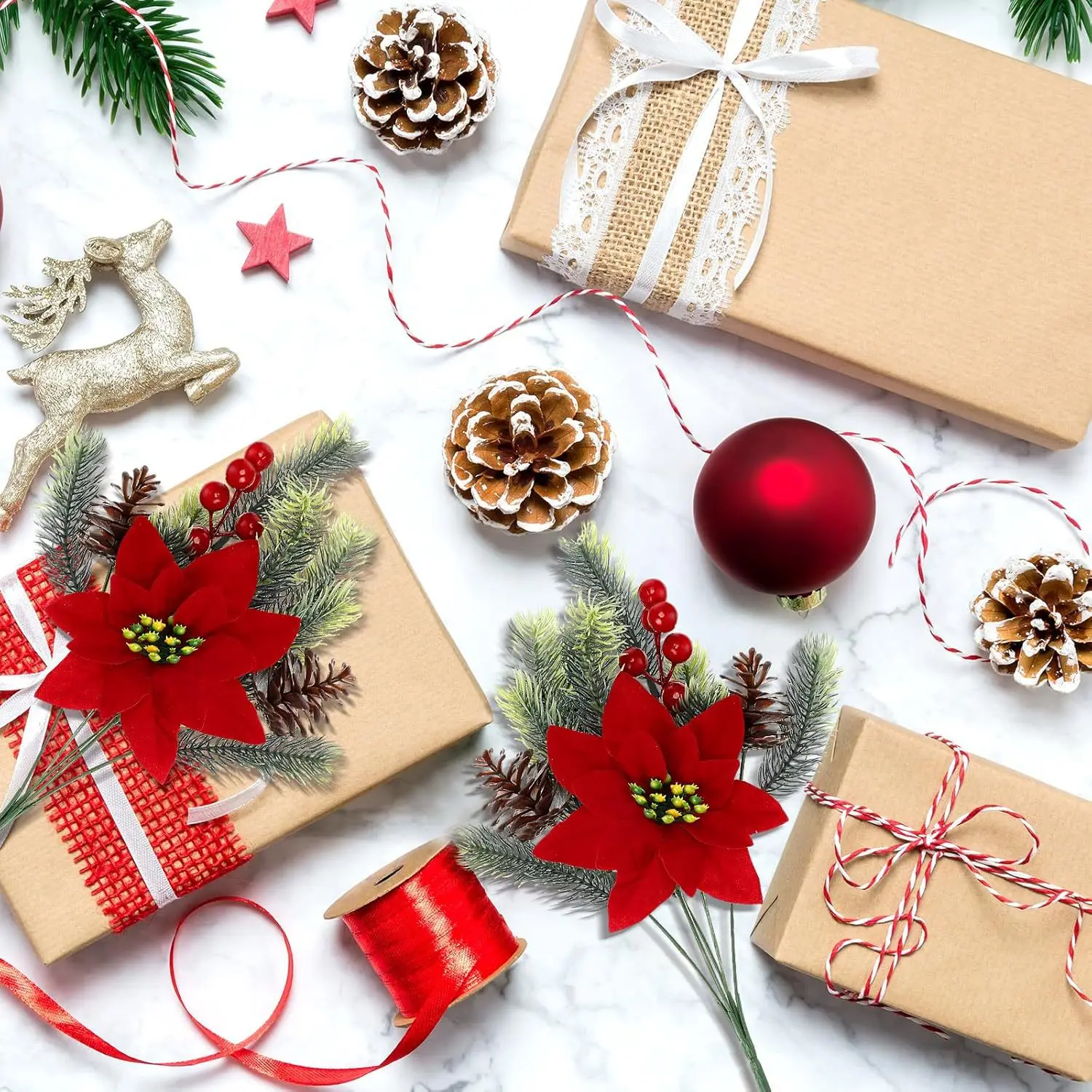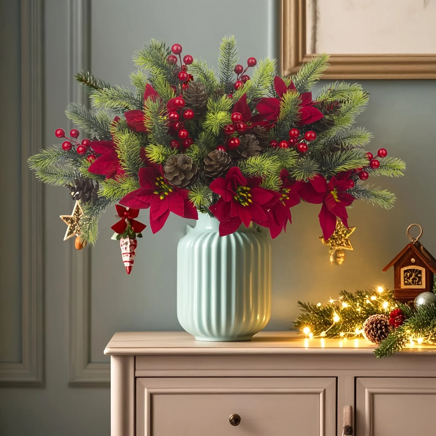 Bouquet de fleurs artificielles, 4 pièces, pommes de pin florales de noël, fausses baies rouges, tiges, pics floraux de houx pour fête de noël