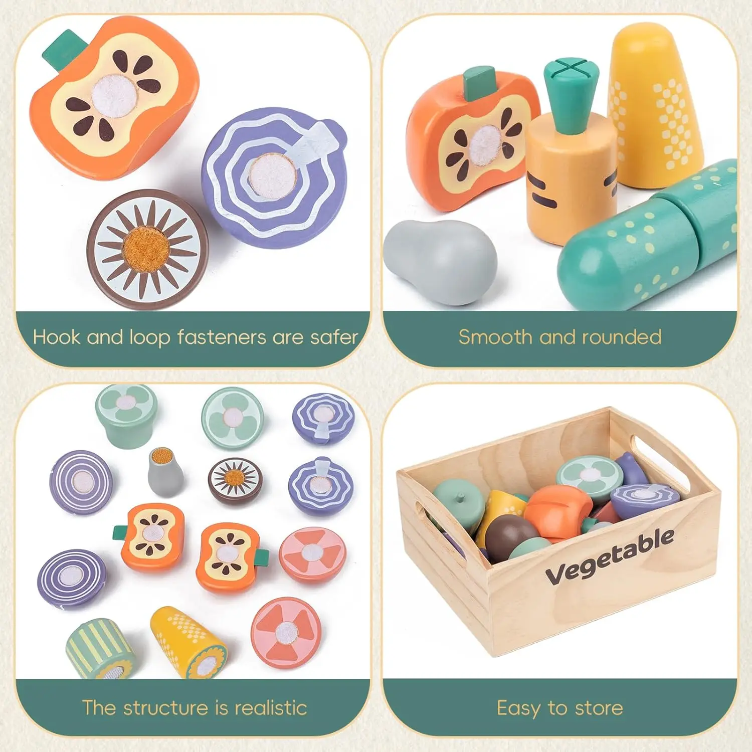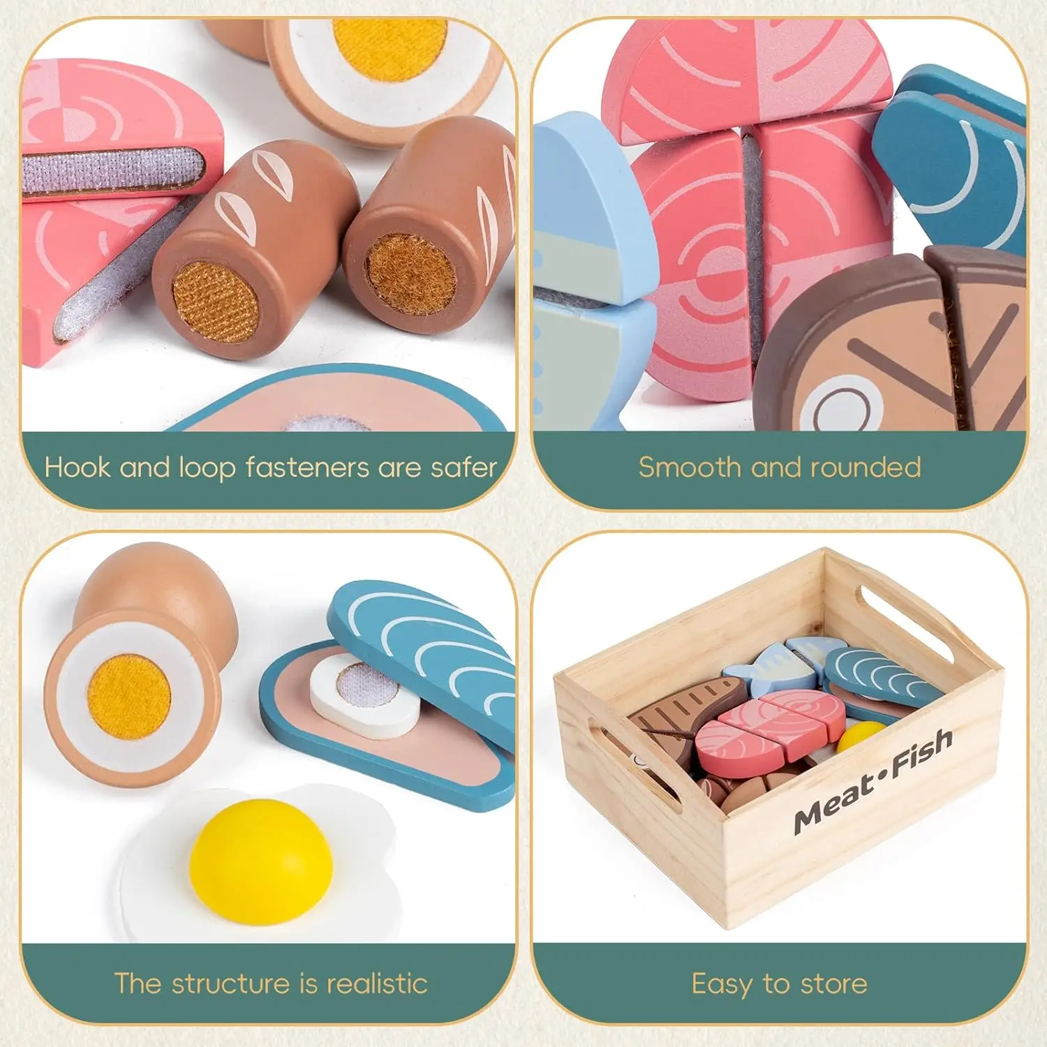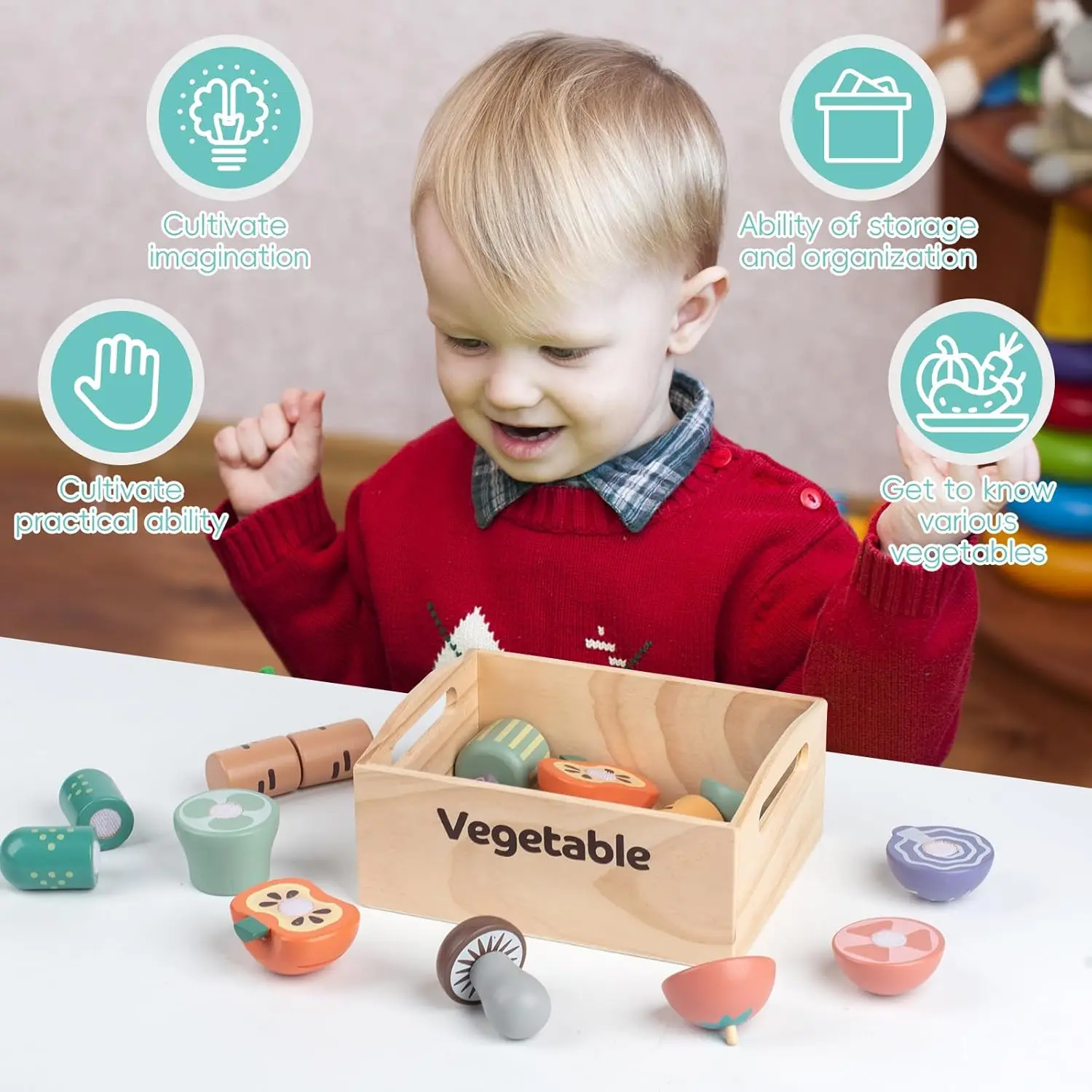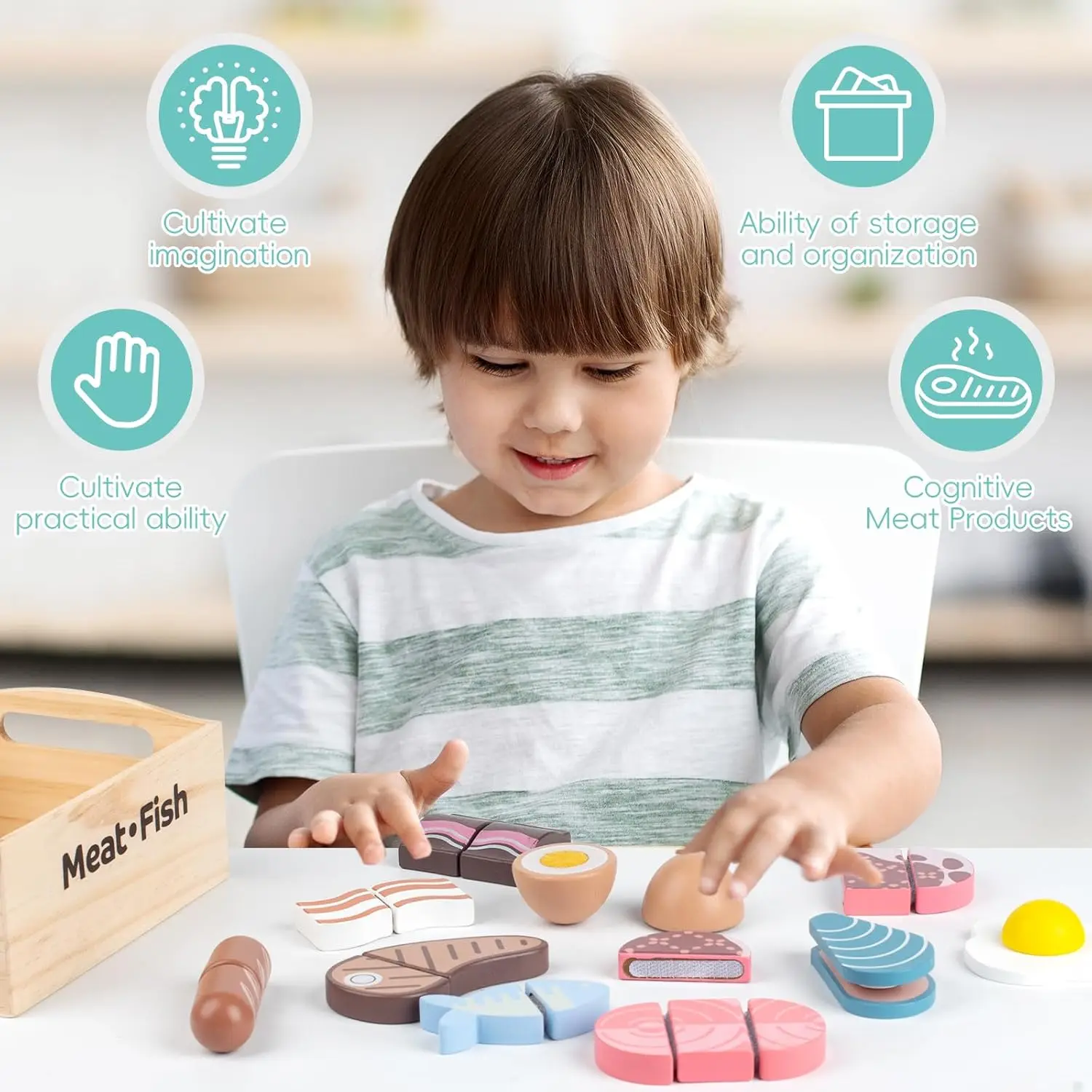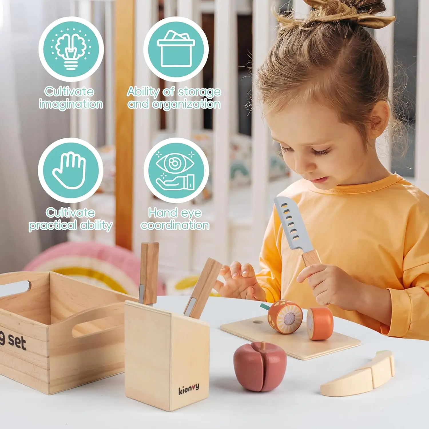 Wooden Kitchen Playset – Montessori Cutting Food Toy for Kids